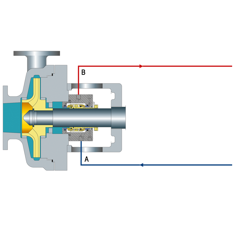 Reservoir providing a dead-ended blanket for fluid to the quench connection of the gland plate. Only recommended for vertical pumps.