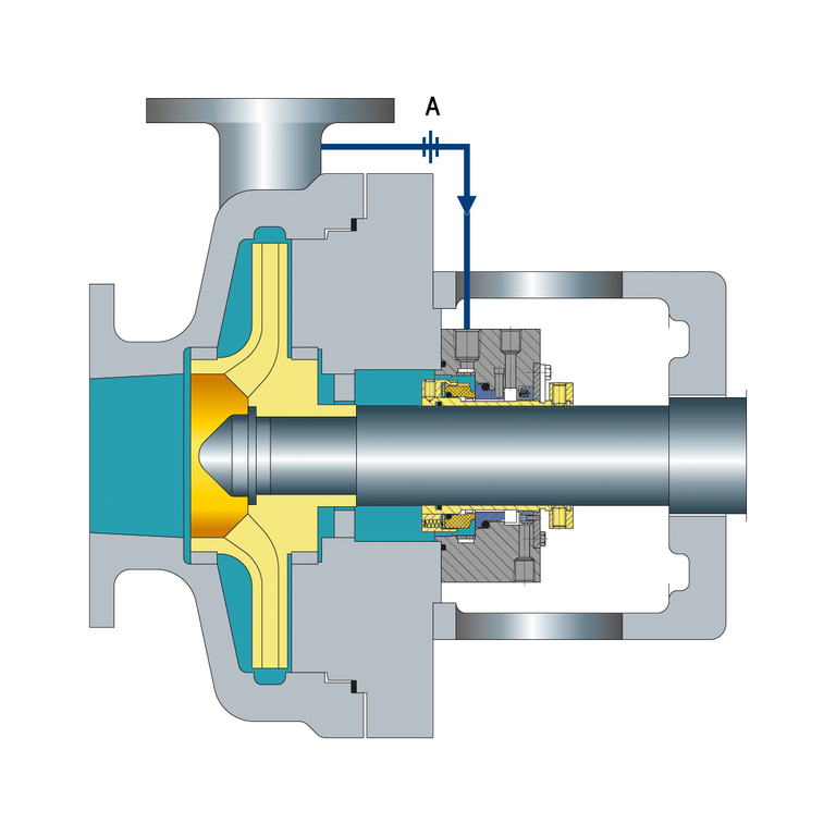 Integral (internal) recirculation from the pump discharge to the seal chamber.