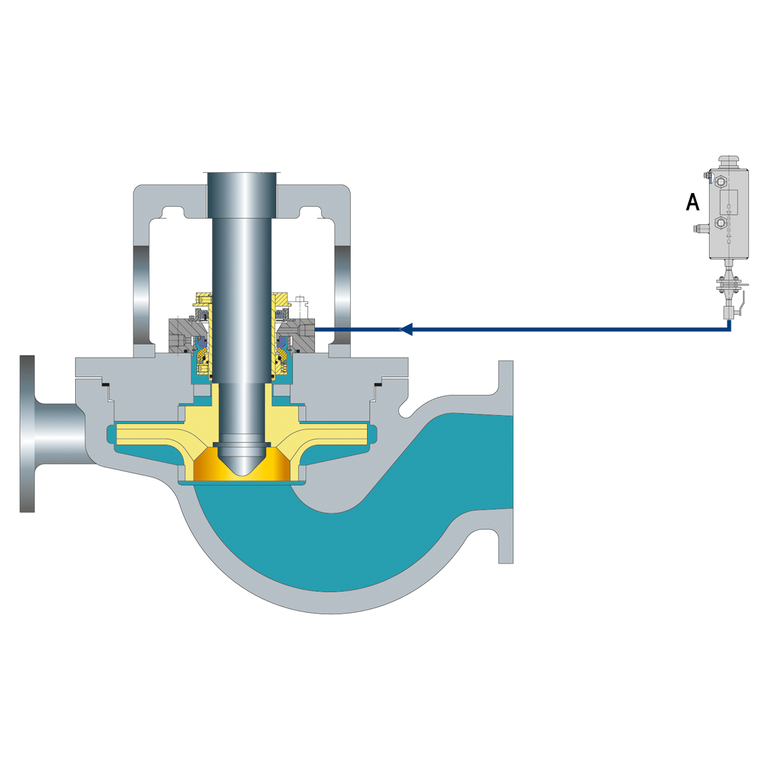 Reservoir providing a dead-ended blanket for fluid to the quench connection of the gland plate. Only recommended for vertical pumps.