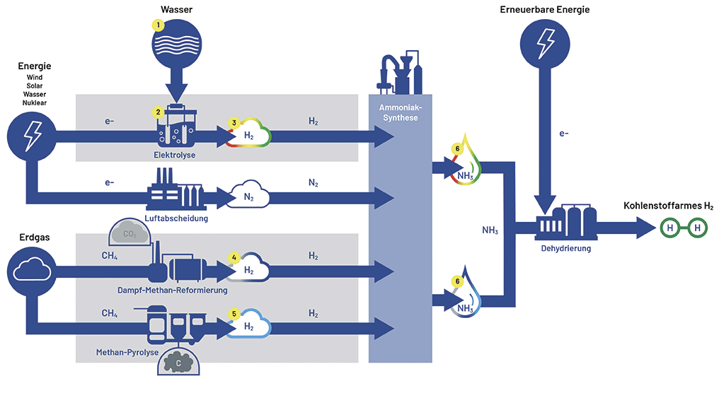 In Ammoniak (NH3) umgewandelter Wasserstoff hat seit Jahrzehnten einen festen Platz in den verschiedensten industriellen Prozessen. Mit den weltweiten Bestrebungen zur Dekarbonisierung der Wirtschaft gewinnt es nun auch als Transportvektor stark an Bedeutung.