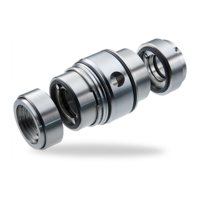Compared to conventional double mechanical seals, the seal systems designed for the Nonflow operating mode have additional bores and spiral grooves inside the housing. This allows the barrier fluid to circulate inside the seal between the product side and the atmosphere side. The frictional heat is conducted to the product side and the cooled sealing water flows back from the product side to the atmosphere side, driven by the rotary motion of the shaft. The seal acts like a heat exchanger. The typically obligatory thermosiphon container for dual action mechanical seals is not required.