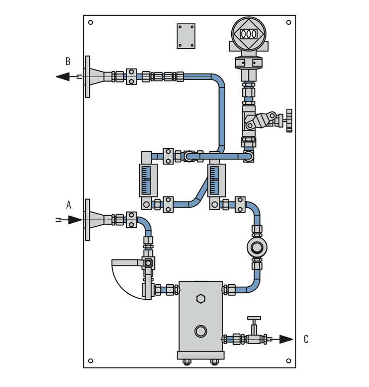 • Coalescing filter with integrated sight-glass for monitoring liquid level to ensure safe operation even in case of poor gas quality.