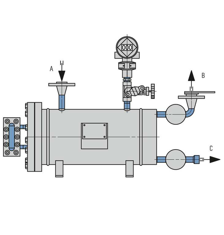 The EagleBurgmann leakage control systems of the LSC6000A4 range are utilized to collect condensing or mixed phase leakage - vapor passing through. A level indicator is installed to determine when the tank needs to be drained. A pressure gauge tracks and indicates seal leakage.