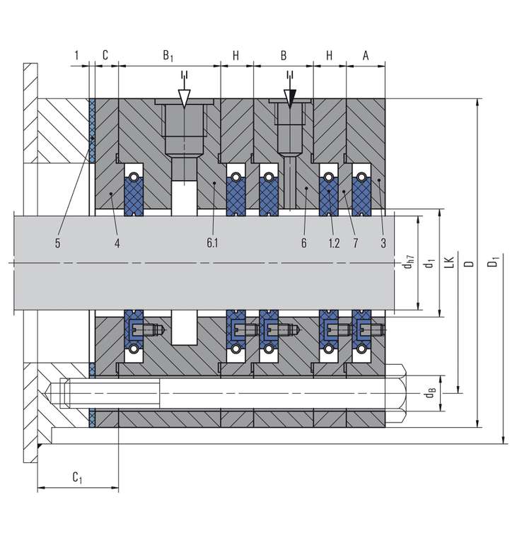 • Multi-part seal rings, radially cut on process side, overlapped mortised with gas tight joints on atmosphere side (adjusting)