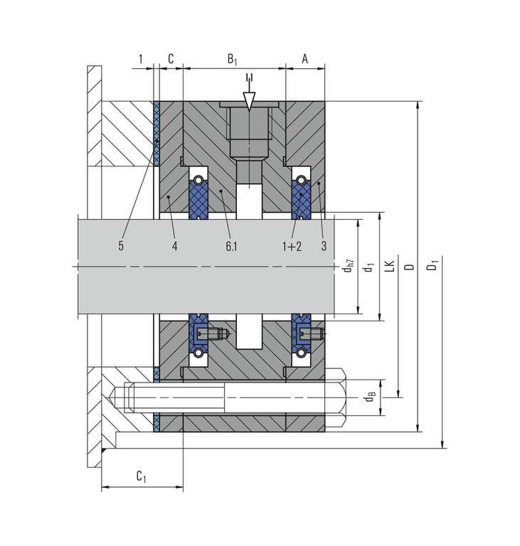 Operating temperature: t = -120 °C ... +500 °C (-184 °F … +932 °F) for carbon, max. 225 °C (437 °F) for PTFE compound, max. 300 °C (572 °F) with grease