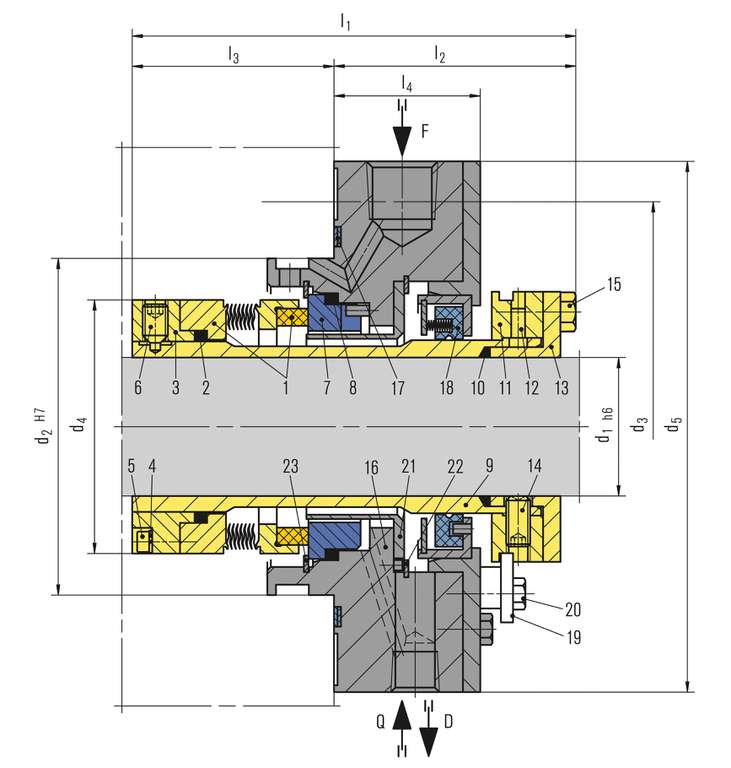 • Absence of dynamic O-Ring eleminates/reduces seal face hang-up