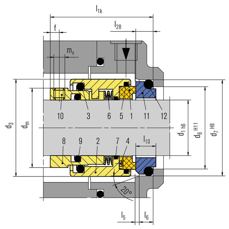 * An integral stationary seat lock is not needed within the permissible low pressure range. For prolonged operation under vacuum it is necessary to arrange for quenching on the atmospheric side.